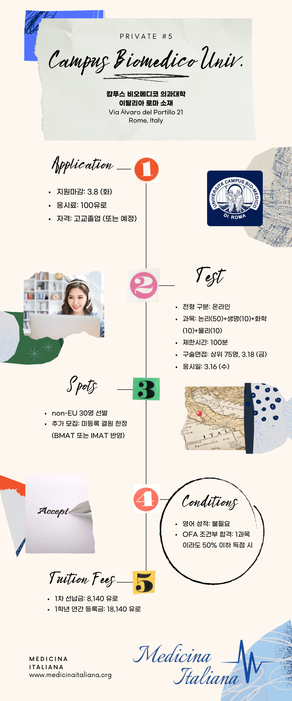 [로마©Medu.News] 지난 12.21부터 시작된 캄푸스 비오메디코 (*바이오메디컬 캠퍼스 로마) 의과대학 2022-2023 학년도 신입생 모집에 따른 입시 특징은 다음과 같다.