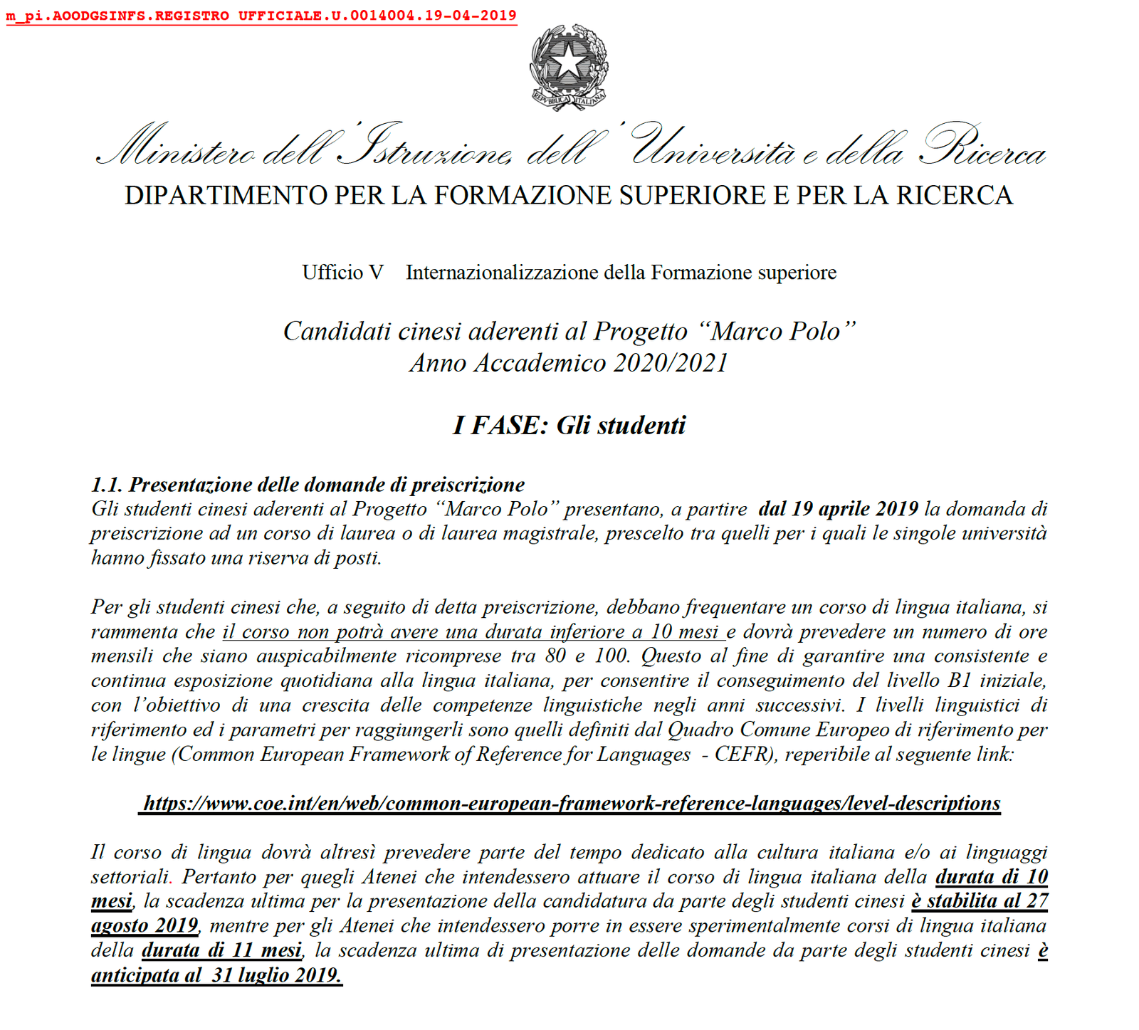 한편, 현재까지 한국을 포함한 non-EU 지원자들의 “가입학 지원절차”에 관한 공식적인 지역별 대사관/총영사관의 발표가 없는 가운데, 올해 대학입시의 “외국인 선발”에 관한 지표로 가늠할 수 있는 내용으로 “Marco Polo (이하 마르코 폴로) Turandot (이하 투란도트)” 프로젝트를 주목할 필요가 있다. 역사적으로 오랜 우방 관계인 이탈리아와 중국의 대표적인 “유학생 우대제도”라 볼 수 있는 “마르코 폴로 및 투란도트” 프로젝트는 “10-11개월 가량 이탈리아어를 수강한 중국 국적자를 이탈리아 국립대학 및 고등 교육기관의 주요 전공 과정에서 우선 선발하는 제도”이다. 일반 non-EU 지원자들에 관한 응시 지원에 관한 세부 일정이 아직까지 발표되지 않은 가운데, 이탈리아 교육당국의 유학 진흥청 홈페이지에는 “마르코 폴로와 투란도트 지원자(=중국 국적자)의 2020-2021 학년도 가입학 지원절차”를 확정 발표했으며, 이들의 가입학 지원절차 또한 예년보다 약 6주 이상 늦게 시작한 상황이다.