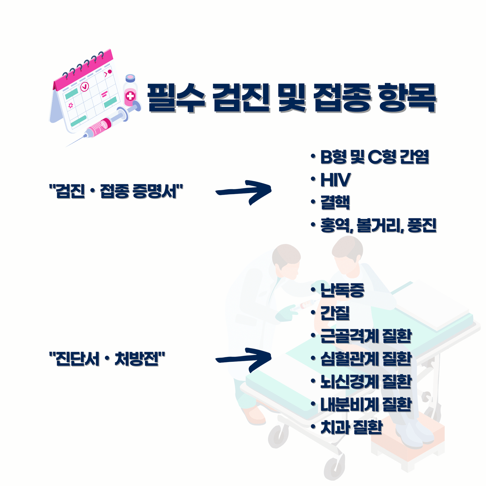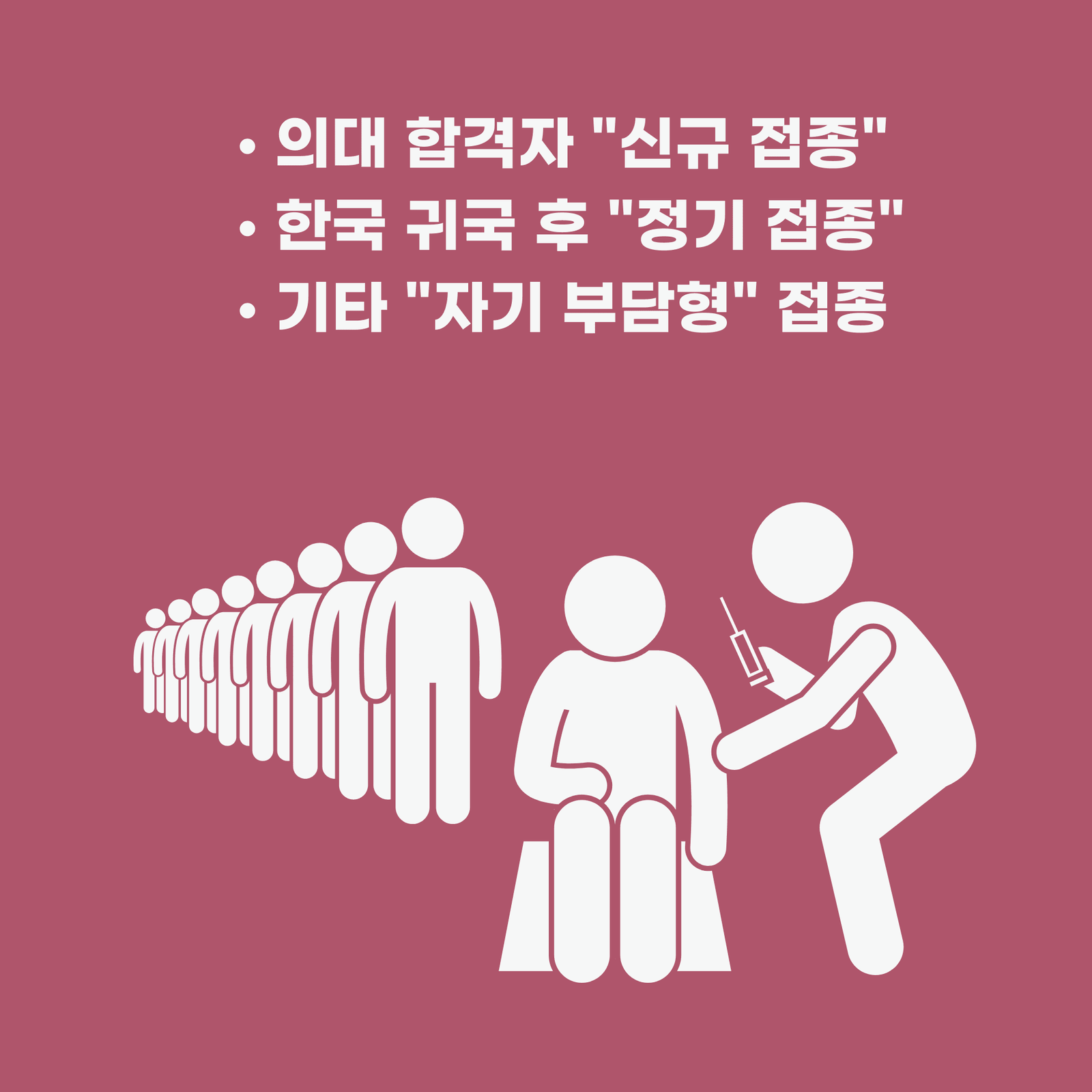 기본적으로 “임상 실습”이 이루어지는 강의실은 곧 “병원”이며, 이는 “다양한 환자와의 일상적인 접촉”을 뜻한다. 때문에, 공식적으로 “병원내 감염” 확률이 가장 높은 사람들이 결국 “의사와 간호사”를 포함하는 의료 전문가 (medical professionals) 라는 사실은 결코 놀라운 사실이 아니며, “임상 실습”을 위해 병원에 자주 출입해야하는 의대생 또한 마찬가지 입장이다. 영어로 nosocomial infection 또는 healthcare-associated infection (*HAI) 등으로 불리는 “병원내 감염”으로 인해, 원칙적으로 모든 의과대학은 입학 시점에 다음과 같은 건강 검진을 실시하고, 필요한 경우에 관련된 예방 접종을 필수 사항으로 포함한다. 그러나, 이탈리아와 독일과 같이 “예방접종에 관한 개인 선택의 자유”를 매우 중요한 정치적 이슈로 간주하는 사회에서는 종종 “의대생” 예방 접종을 두고 사전에 예고하지 않다가 “실습 직전에 요구”하는 경우가 적지 않을 뿐만 아니라, “유학생”의 경우에는 갑작스러운 예방 접종 필요 여부에 대한 확인 절차로 인해 “현실적인 불편”을 호소하는 경우도 많다. 특히, 한국은 유럽과는 달리 “출생 직후부터” 이어지는 각종 예방 접종으로 굳이 “만 18세 이후의 예방 접종”을 적극적으로 권장하거나 확인하는 경우가 적었다. 다만, 코로나19 이후, 독감 예방 접종을 포함하여 다양한 “질병 예방” 차원에서 예방 접종에 관심을 갖는 경우도 꾸준히 늘어나는 가운데, “이탈리아 의대 재학생”에게 꼭 필요한 건강 검진 내용과 관련 예방 접종은 반드시 출국 이전에 확인하고 가급적 모든 접종 회차를 마치고 이탈리아로 입국할 것을 권장한다 (*하단 이미지 참조).